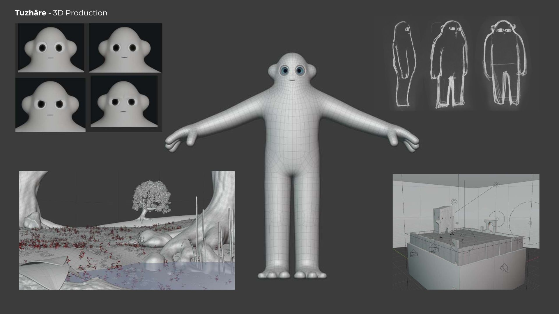 Storyboard, Concept Design, Modeling, Rigging, Animation, Lighting, Shading, Compositing, Sound Design